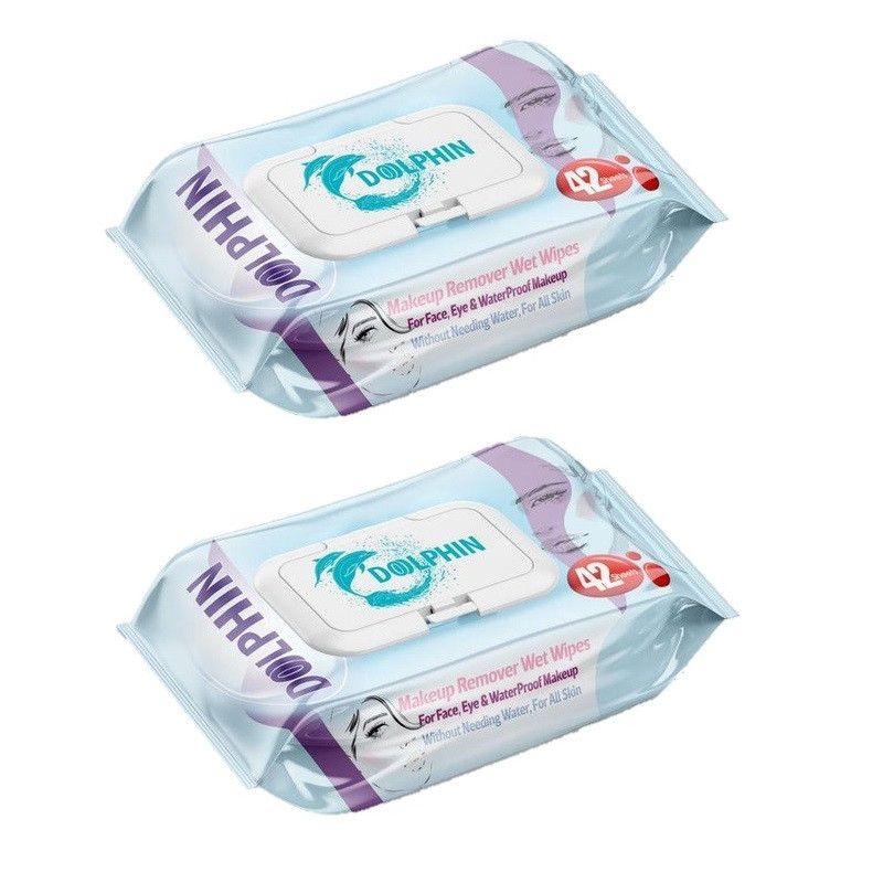 دستمال مرطوب پاک کننده آرایش دلفین مدل 002 بسته 42 عددی