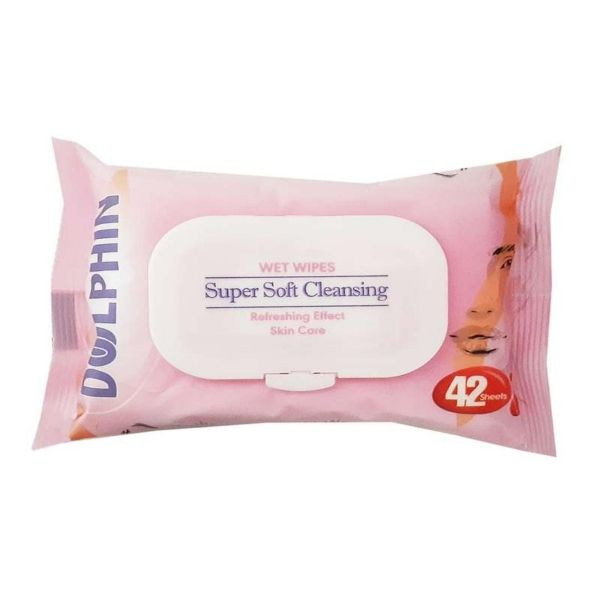 دستمال مرطوب دلفین مدل super soft cleansing بسته 42 عددی