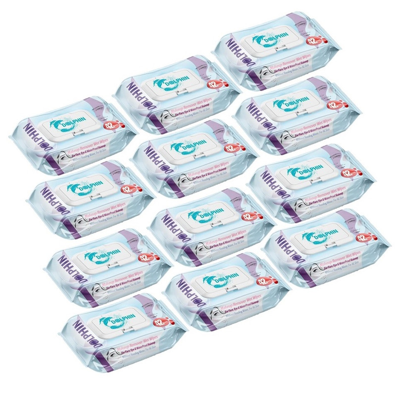 دستمال مرطوب پاک کننده آرایش دلفین کد 1 مجموعه 12 عددی