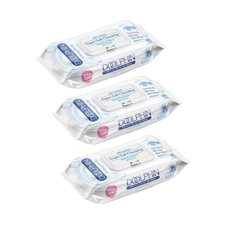 دستمال مرطوب پاک کننده آرایش دلفین کد 60 مجموعه 3 عددی