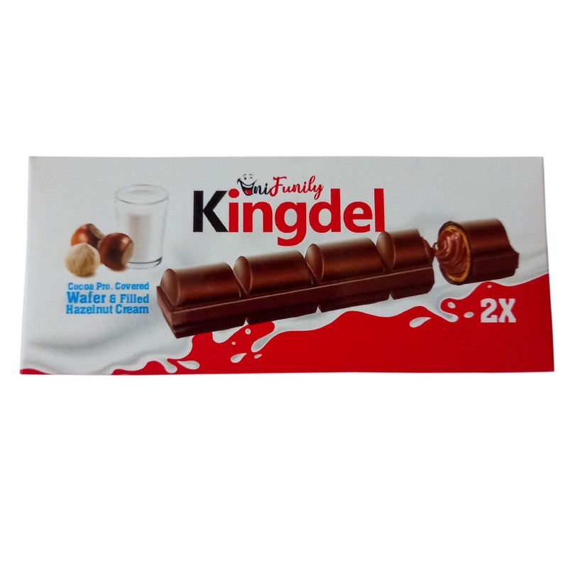 ویفر 2 قلو با کرم فندوق و روکش شکلات کینگدل - 60 گرم بسته 5 عددی