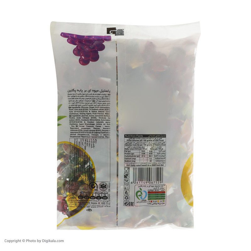 ارزش غذایی در هر 100 گرم: - چربی 0.002 گرم - پروتئین 0.002 گرم - کربوهیدرات 72.1 گرم - کلسیم 3.8 میلیگرم - سدیم 56.7 میلیگرم