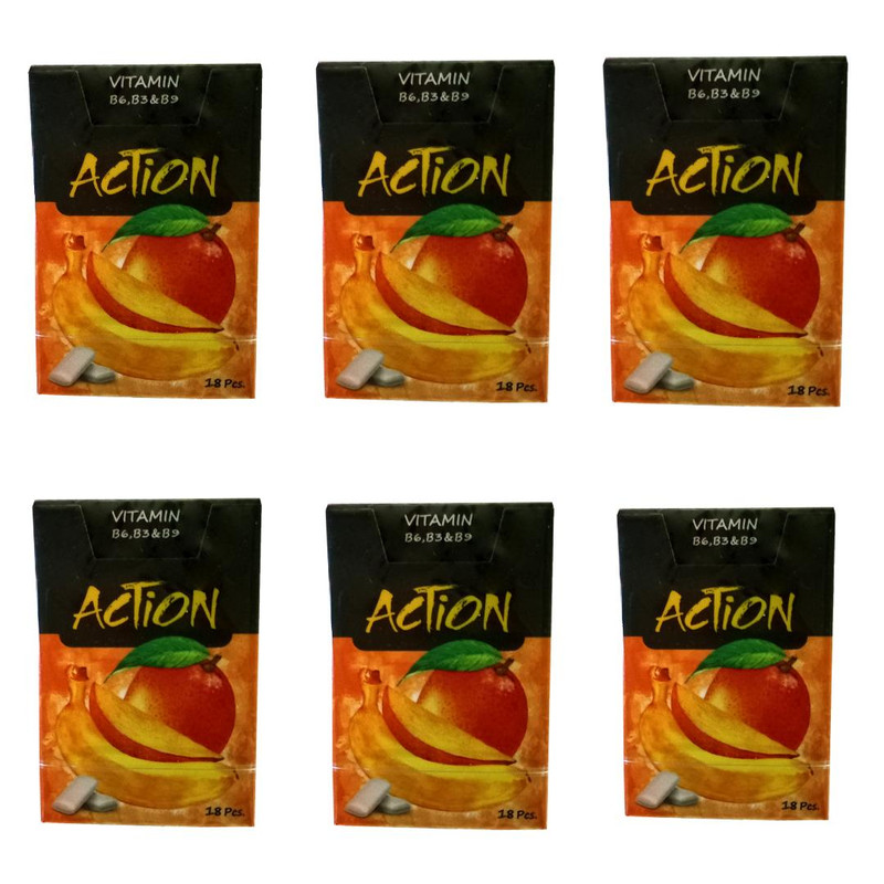 آدامس میکس توت انبه و موز اکشن - 25 گرم بسته 6 عددی