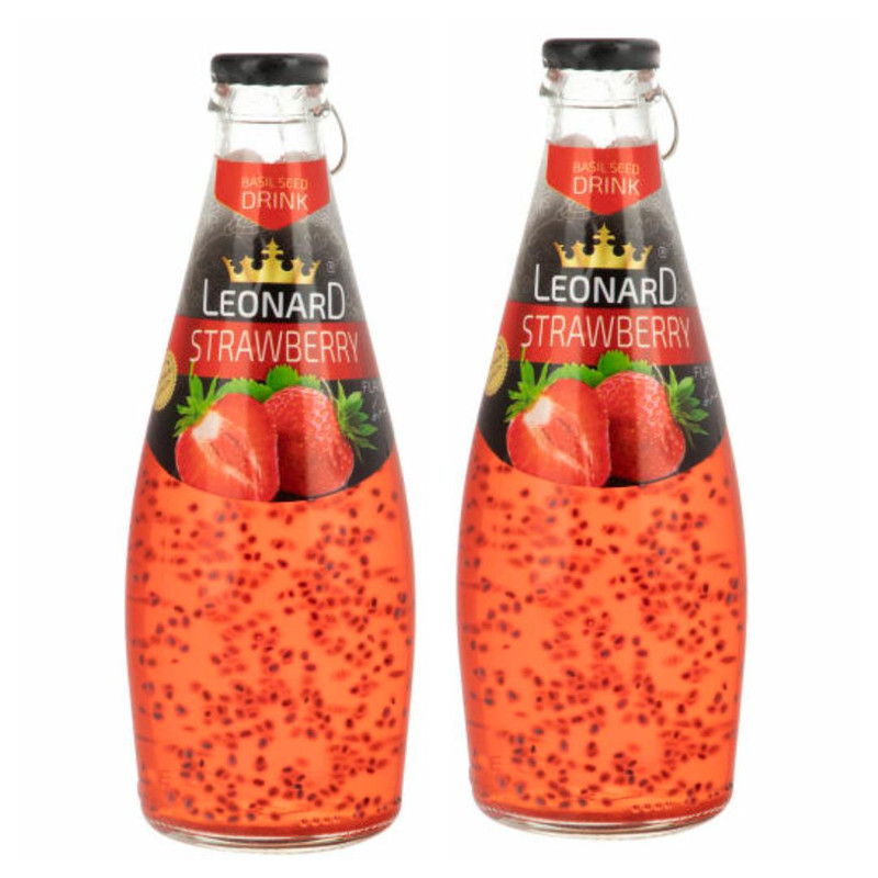 نوشیدنی لئونارد با طعم توت فرنگی و تخم ریحان - 300 میلی لیتر 2 عددی