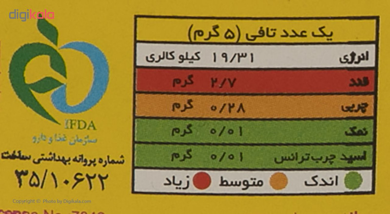سایر توضیحات : ارزش غذایی در هر سهم از مصرف (1 عدد تافی):