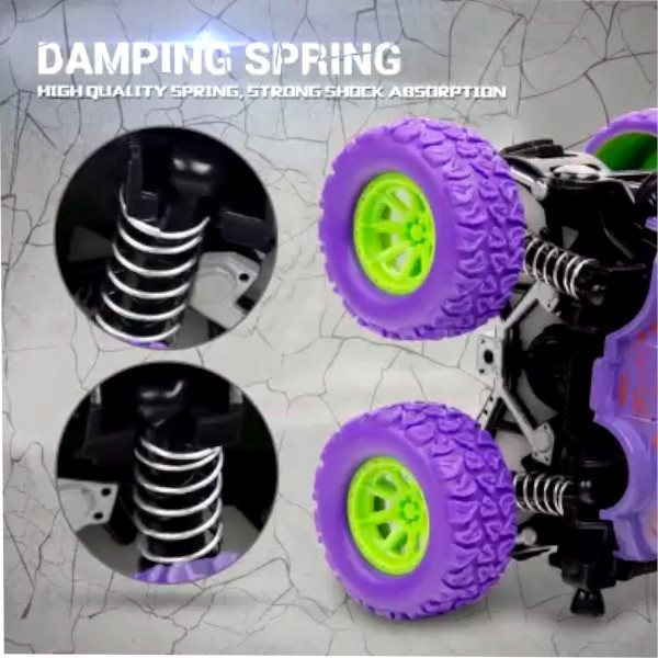 و همچنین با 4 فنر ضد ضربه، می تواند لرزش جاده های ناهموار را از بین ببرد و رانندگی را روان تر کند. دانه های لاستیک شبیه سازی شده باعث می شود تایرهای لاستیکی بافتی تر و ضد ضربه داشته باشند. بدون نیاز به باتری!