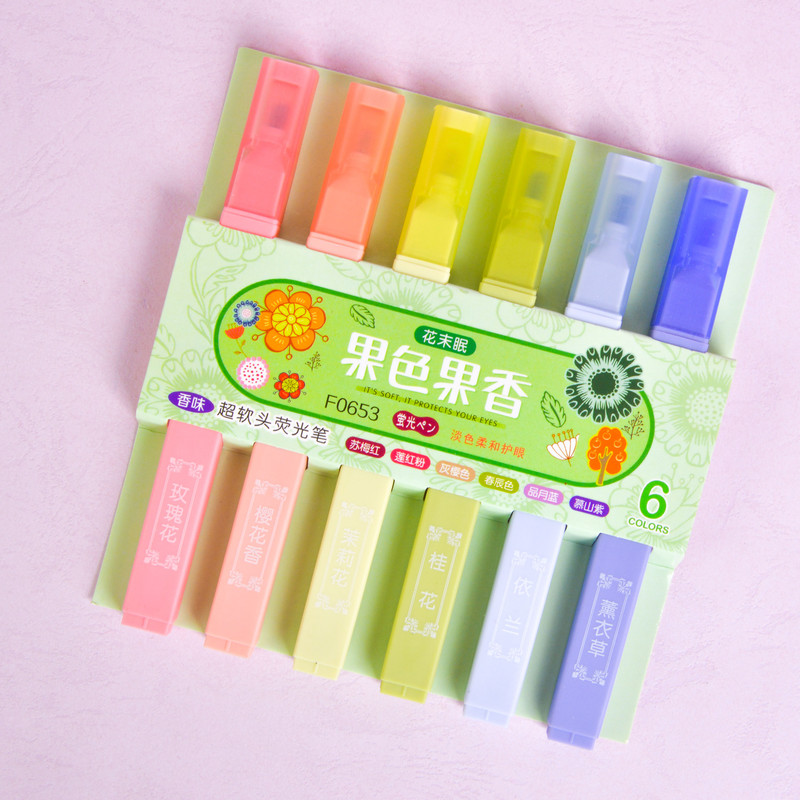 ماژیک علامت گذار ژیخوآ مدل معطر گل های بهاری طرح پاستلی بسته 6 عددی