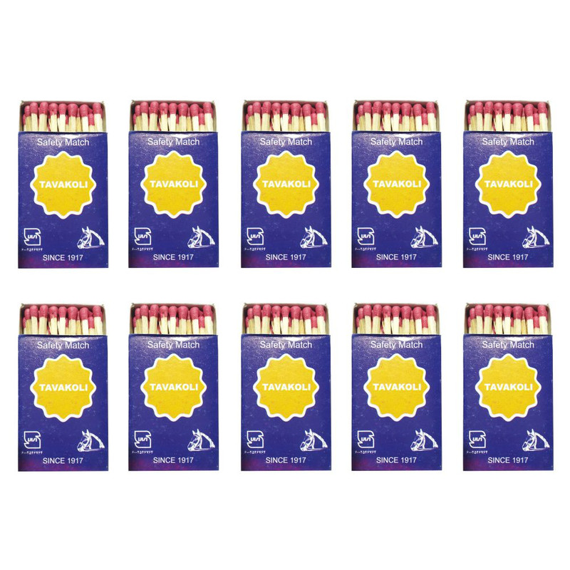 پک شامل 10 جعبه کبریت توکلی هر جعبه شامل حدودا 35 عدد کبریت می باشد. ارتفاع هر عدد چوب کبریت 4.5 سانتی متر می باشد.