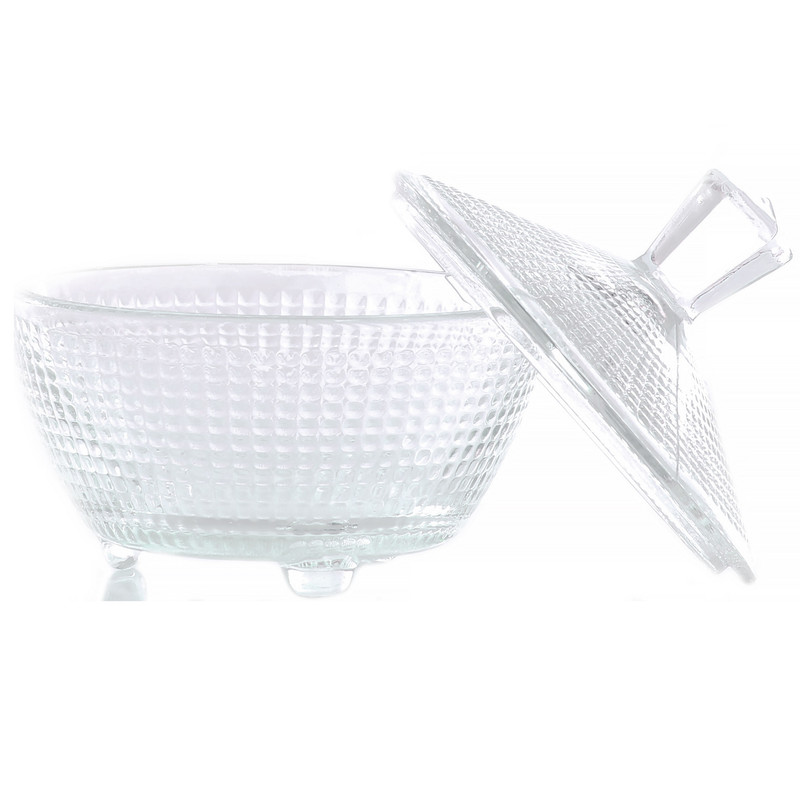 این قندان از جنس بلور شفاف و درجه یک تولید شده است و در بدنه آن هیچ زائده و برجستگی اضافی وجود ندارد. اندازه قندان کاوه متوسط بوده و همچنین دارای یک درب زیبا و شفاف می باشد که از جنس بدنه است. شکل ظاهری این قندان شیشه ای مانند کاسه ای گود و لبه دار می باشد که درون آن سطح صافی دارد ، در صورتی که سطح خارجی برجسته بوده و طرح های ریز نقش روی آن کار شده است که سادگی و زیبایی خاصی به کار می دهد. درب این قندان شیشه ای دارای یک دسته برجسته از جنس بدنه و به صورت شفاف است که با استفاده از آن می توان به راحتی درب را بلند کرد و از محتوای درون قندان که می تواند قند ، انواع شکلات و… باشد استفاده نمود. قندان بلوری کاوه مدل ونیز یک قندان زیبا و شفاف است که به بانوان و همچنین نوعروسان برای تکمیل لوازم آشپزخانه کمک می کند تا به راحتی سرویس چای خوری خود را تهیه نموده و همینطور با دیگر لوازم بلوری مانند استکان و… ست کرده و نمای زیبایی به آن ها دهید. این قندان زیبا و بلوری دارای سه عدد پایه کوتاه در بخش زیرین می باشد که هنگام قرار دادن آن روی سطوح از لغزش قندان جلوگیری می کند. لبه های صاف دهانه این محصول نیز باعث می شود تا هنگام قرار دادن درب به راحتی روی بدنه قرار گیرد ، بدون آن که از هم فاصله ای داشته باشند. وجود درب روی این قندان زیبا باعث می شود تا محتویات داخل آن از هر گونه گرد و غبار و یا حشرات دور بماند.