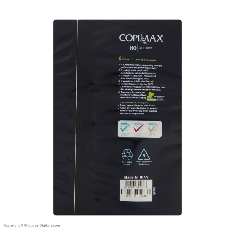 کاغذ A4 کپی مکس یکی از پراستفاده ترین کاغذهای A4 محسوب میشود. کاغذ A4 کپی مکس در بسته 500 عددی عرضه شده است. ابعاد این کاغذ 297 × 210 میلی متر با وزن 2.5 گرم است. این کاغذ برای انواع پرینتر لیزری ، انواع پرینتر جوهرافشان، دستگاههای فکس و دستگاههای کپی مناسب است. از جمله نکات مثبت کاغذ A4 کپی مکس بستهبندی 100% قابل بازیافت و دوستدار محیط زیست آن است. این کاغذ دارای سایز استاندارد بوده که در اکثر مکانها از جمله ادارات، سازمانها و مدارس استفاده میشود. سعی کنیم