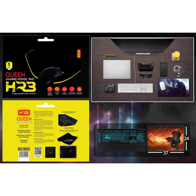 ماوس پد گیمینگ با ابعاد 37x24 سانتیمتر و طرح World Map، سازگار با تمامی انواع ماوسها، تولید شده توسط برند HRB. این ماوس پد از پلاستیک فشرده با روکش پارچهای ساخته شده، ضد آب بوده و قابلیت شستشو دارد. لبههای آن با تراکم بالا دوردوزی شده است تا دوام بیشتری داشته باشد.