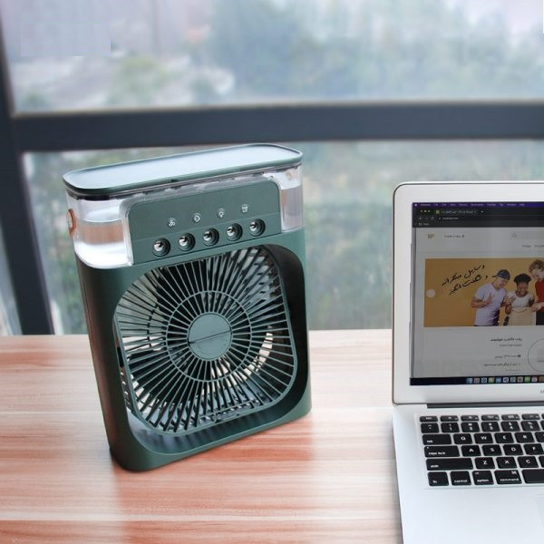 این پنکه رومیزی، با دارا بودن یک مخزن 600 میلیلیتری آب، ذرات کوچک آب را مانند مه در فضا پخش میکند و این ذرات، به دلیل اندازه بسیار کوچکشان، سریعا تبخیر میشوند و برخلاف تصور، باعث خیسی محیط نمی شوند و با جذب گرمای لازم برای تبخیر، موجب کاهش دما و خنک شدن هوا خواهند شد.