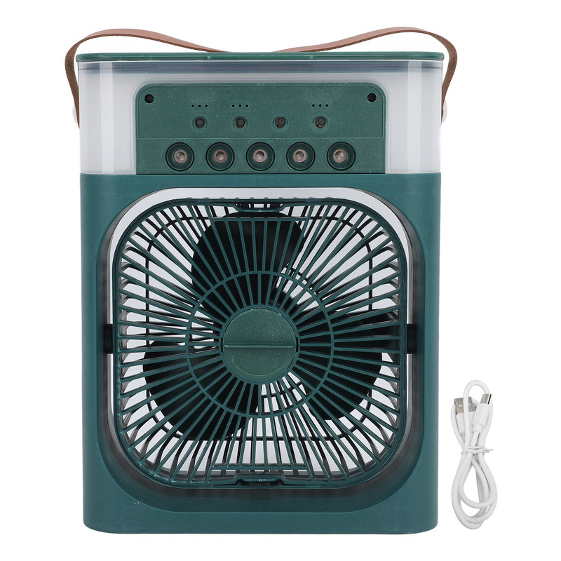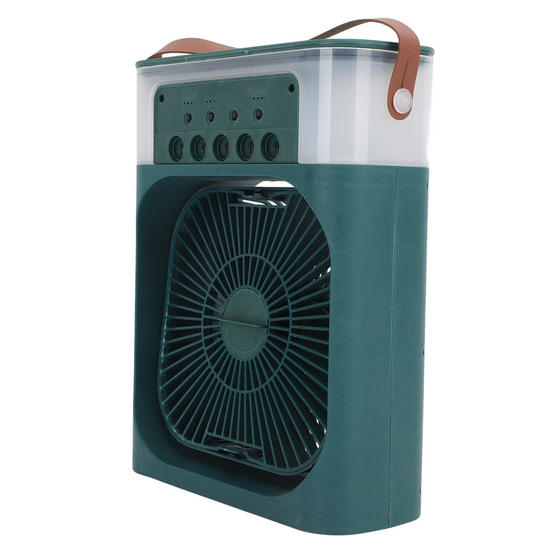 پنکه مه پاش رومیزی مدل Air Cooler Fan فاقد باتری است و به صورت مستقیم توسط آداپتور و کابل USB Type C به برق متصل میشود. دارای پنج نازل مه پاش قوی و قابلیت تنظیم تعداد مه پاش ها است. دارای پد خوشبو کننده و تایمر جهت خاموشی خودکار می باشد. فن دستگاه قابلیت تنظیم دستی و چرخش 360 درجه در یک جهت را دارد و محافظ فن دارای قابلیت باز و بسته شدن جهت نظافت پره ها میباشد. ترجیحا از آب تصفیه شده درون دستگاه استفاده شود (جهت جلوگیری از رسوب)