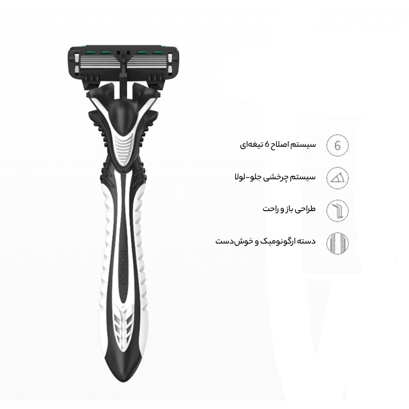 نوع تیغ و یدک اصلاحتیغ خودتراشکشور مبدا برندکره جنوبیجنس تیغهتیتانیومامکانات لوازم اصلاحنوار ژلمناسب برایخانمها و آقایانتعداد لبه تیغ6