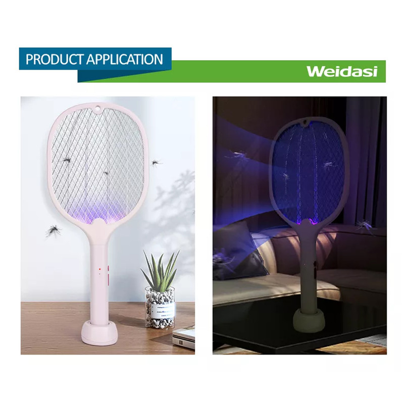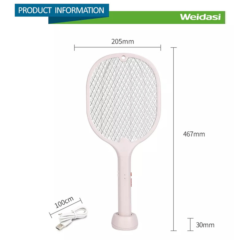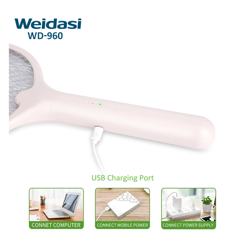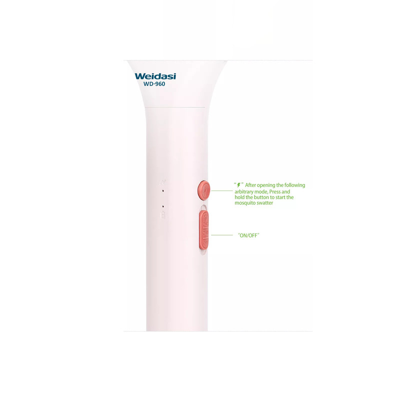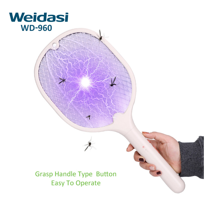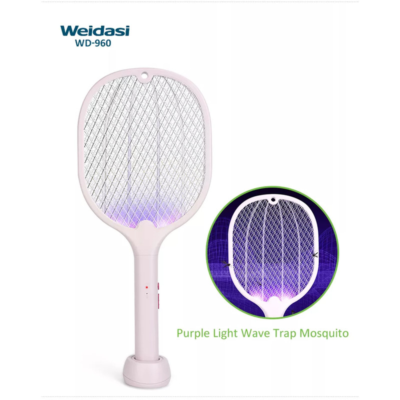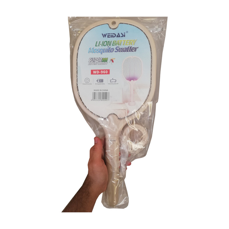 حشرهکش راکتی Weidasi WD-960 برای از بین بردن حشرات از قبیل مگس ، پشه ، زنبور و دیگر حشرات پرنده که باعث انتقال بیماری و مشکلاتی دیگر در محیط زیست می شوند ، انتخابی مناسب است به دلیل اینکه این دستگاه با ازبین بردن حشره با های ولتاژ یا ولتاژ بسیار بالا ، آثاری از باکتری زنده و یا عامل بیماری زا در جسد بر جای مانده ازحشره نیز باقی نمی گذارد .مکانیسم عملکرد دستگاه بدین طریق است که رویه راکت از سه لایه شبکه سیمی تشکیل شده است که دوشبکه کناری حکم یک الکترود را داشته و شبکه میانی الکترود دیگر را تشکیل می دهد ولتاژ بالا ( در حدود 3000 ولت )توسط یک برد الکترونیکی و با منبع تغذیه که یک باتری قابل شارژ می باشد ، ایجاد شده و بین این دو الکترود برقرار می شود و با حرکت دادن راکت درهوا و درمسیر حرکت حشرات و در حین عبور حشره از میان شبکه سیمی راکت ، صدای تخلیه الکتریکی شنیده شده و حشره نابود خواهد شد .تفاوت این دستگاه با دستگاههای مشابه ، قرار گرفتن بر روی پایه شارژ و شارژ شدن دستگاه با شارژر موبایل می باشد ( به همراه دستگاه فقط رابط شارژ قرار دارد ) و استفاده از باتری لیتیوم یون می باشد که دوام و ظرفیت بالاتری نسبت به انواع باتری های سیلد اسید دارد و بدون شارژ کردن و بدون استفاده تا 3 سال و یا بیشتر هم هیچ آسیبی نمی بیند همچنین در قسمت داخلی دستگاه منبع نور فرابنفش وجود دارد و حشرات را به سوی خود می کشد . دستگاه میزان شارژ باتری را با چند ال ای دی نشان می دهد.