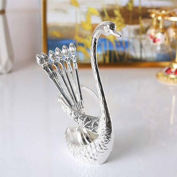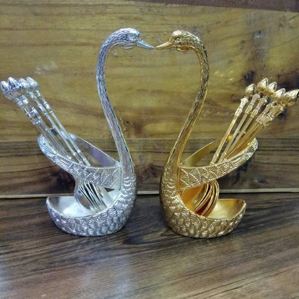 ست قاشق مدل قو شامل 6 عدد قاشق چای خوری پایه قو برای نگهداری از آن طراحی شده است . این محصول مناسب برای پذیرایی و در سینی سرو قرار میگیرد . مناسب برای دکوراتیو و استفاده برای پذیرایی است. طول هر قاشق حدود 11 سانتی متر میباشد.
