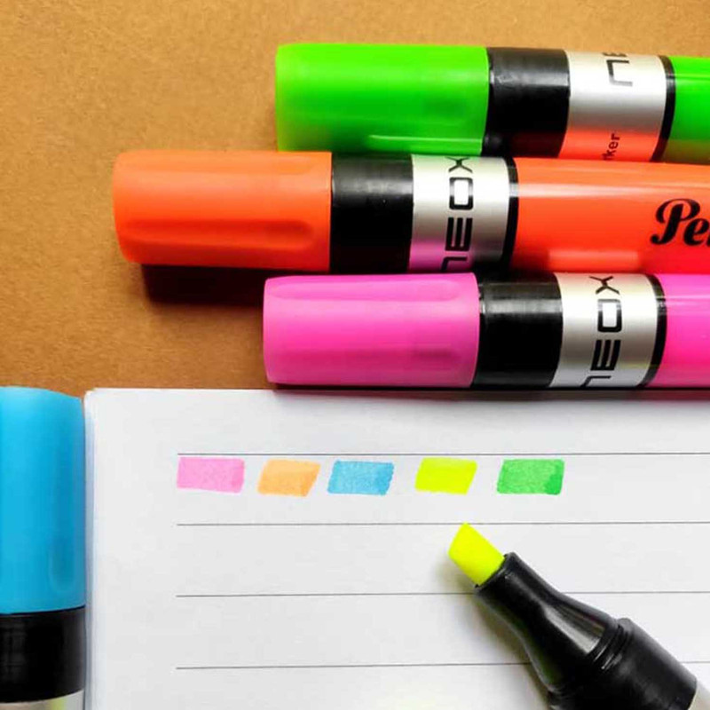 تنوع رنگی: ماژیک علامت گذار پلیکان NEOX در رنگهای مختلفی مانند آبی، سبز، زرد، نارنجی، صورتی و... به بازار عرضه میشود که بسته به سلیقه خود میتوانید هایلایتر دلخواهتان را خریداری کنید. دقت داشته باشید که در فرآیند خرید رنگ ماژیک پلیکان دیجی کالا، محصول را طوری انتخاب کنید که متون چاپ شده در کتابها قابل مشاهده باشند. همچنین توصیه میکنیم از تمام رنگها در یک صفحه استفاده نکنید زیرا گیج خواهید شد.