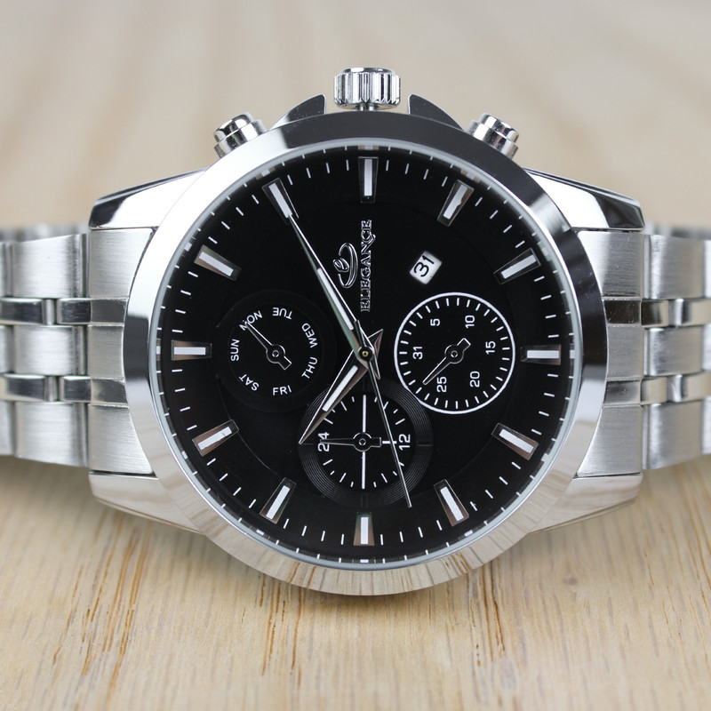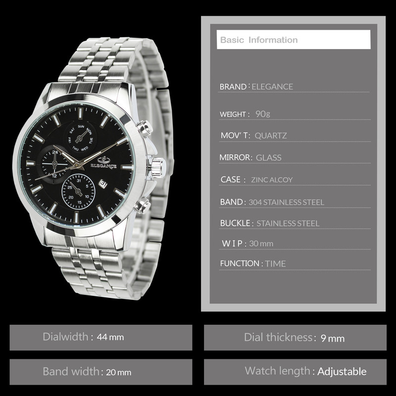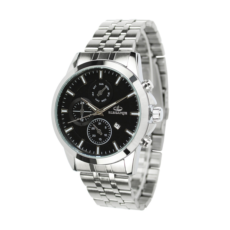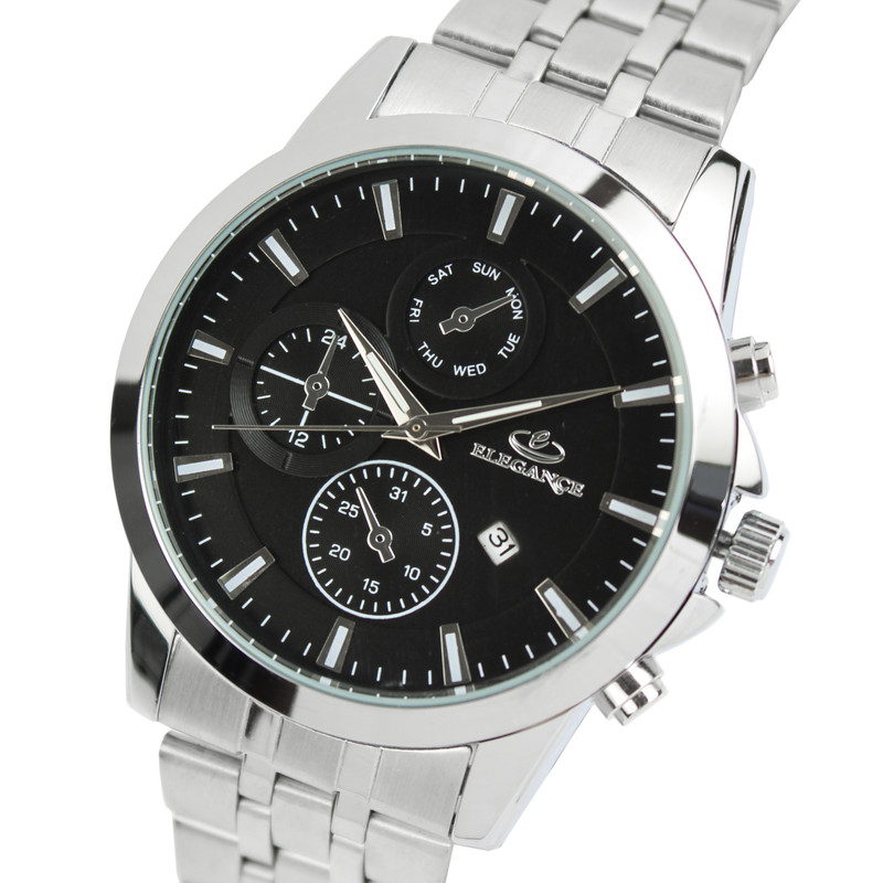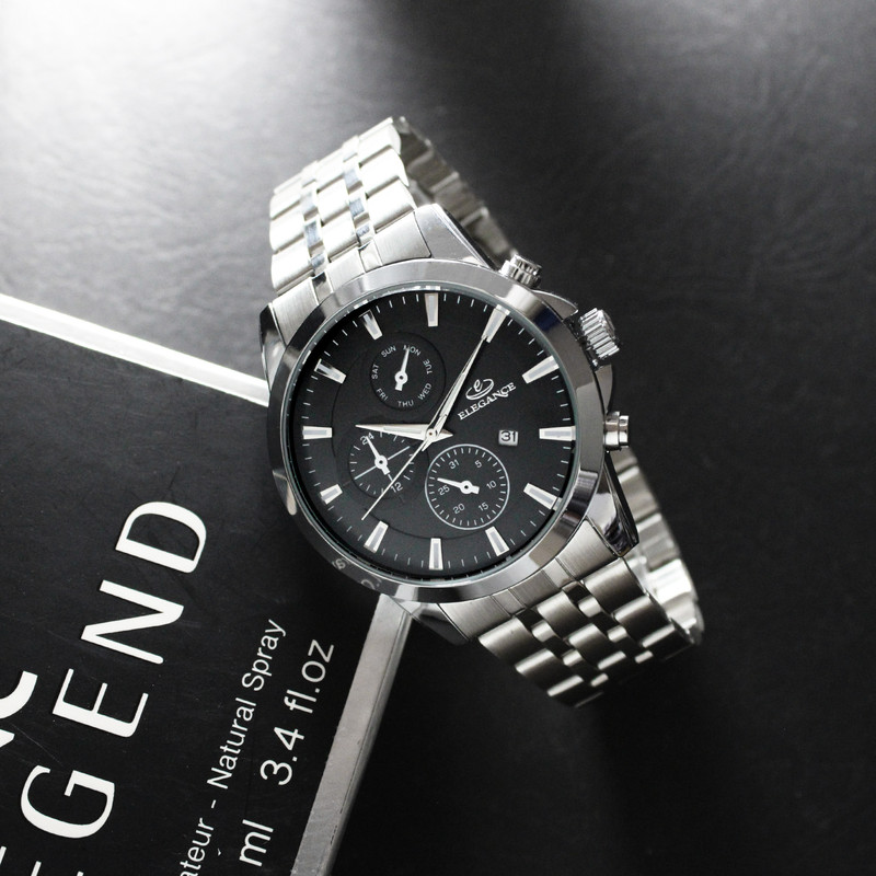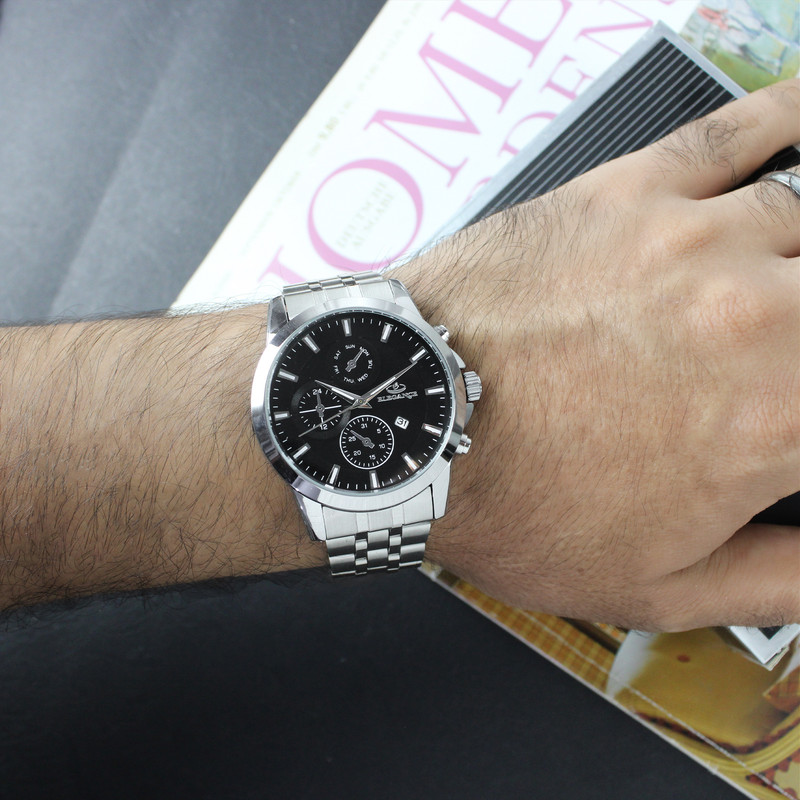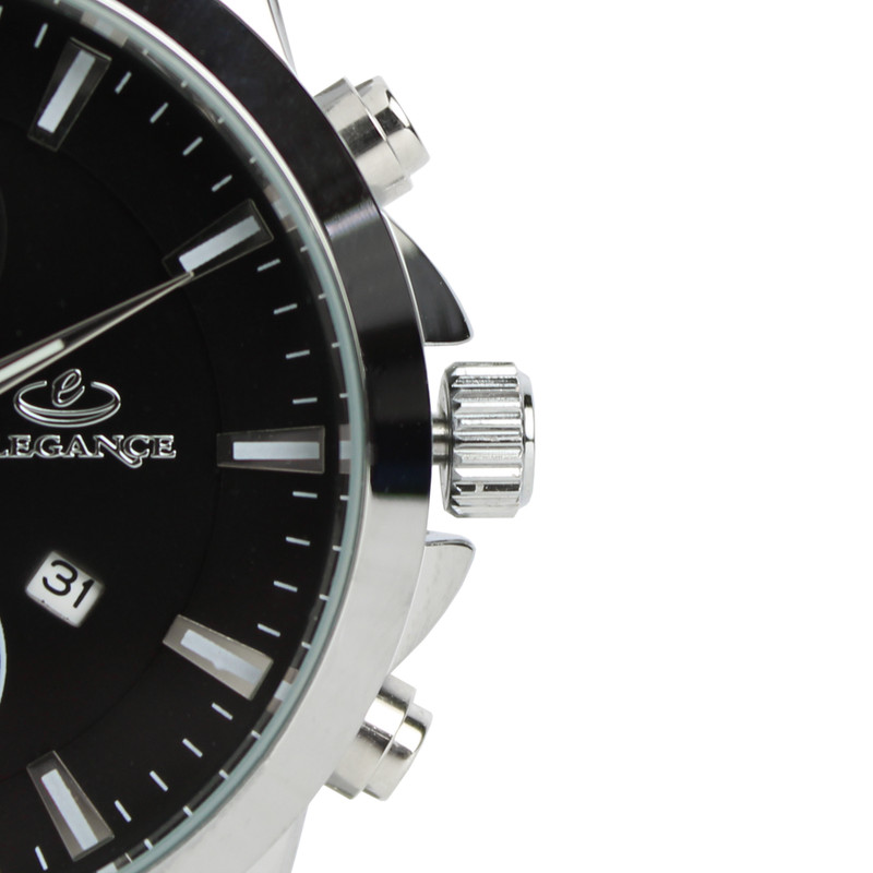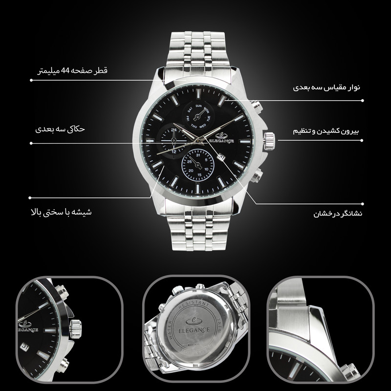 ساعت مچی عقربهای کوارتز مردانه الگانس مدل EMSMJ5087 ترکیبی از طراحی لوکس، کلاسیک و کاربردی است که برای استفادههای رسمی، کژوال و موقعیتهای خاص ایدهآل محسوب میشود. این مدل دارای صفحه گرد مشکی با طراحی بلک لایت است که تضاد جذابی با عقربههای سفید نقرهای ایجاد کرده و خوانایی بالایی را فراهم میکند. قطر صفحه ۴۴ میلیمتر و ضخامت بدنه ۹ میلیمتر، تعادل مناسبی بین ظرافت و ابعاد چشمگیر ارائه میدهد.