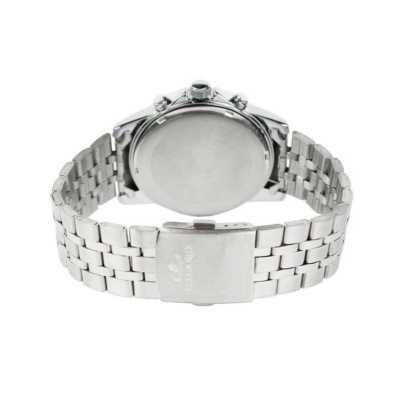 بدنه و بند ساعت از استیل مقاوم و با دوام ساخته شدهاند؛ رنگ نقرهای بدنه و بند، جلوهای لوکس و شیک به ساعت بخشیده است. بند استیل با عرض ۲۰ میلیمتر و طول ۲۰ سانتیمتر در حالت باز، همراه با قفل سگکی قلابدار، راحتی و امنیت بالایی در هنگام استفاده فراهم میکند.