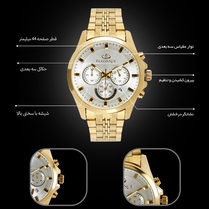 این ساعت جزء ساعت های کلاسیک و آنالوگ محسوب می شود و مناسب برای آقایان خوشتیپ می باشد. ساعت مچی الگانس آنالوگ سه موتوره است و باتری بسیار قوی دارد و دارای بند استیل می باشد. بند استیل، اغلب محبوب ترین انتخاب برای آقایان است.