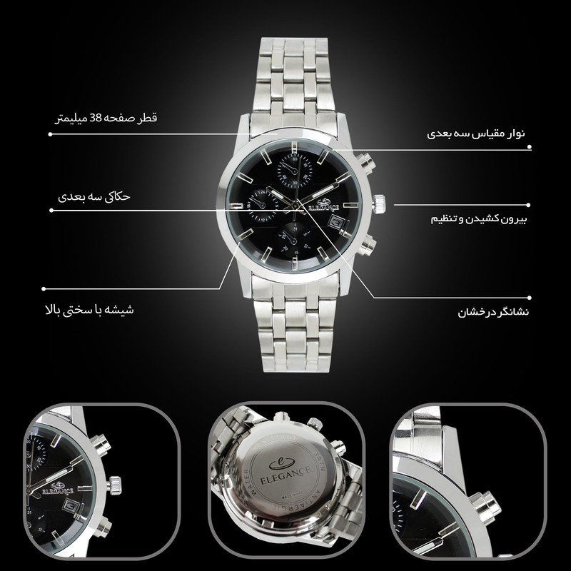 قطر صفحه ساعت : 38 میلی متر