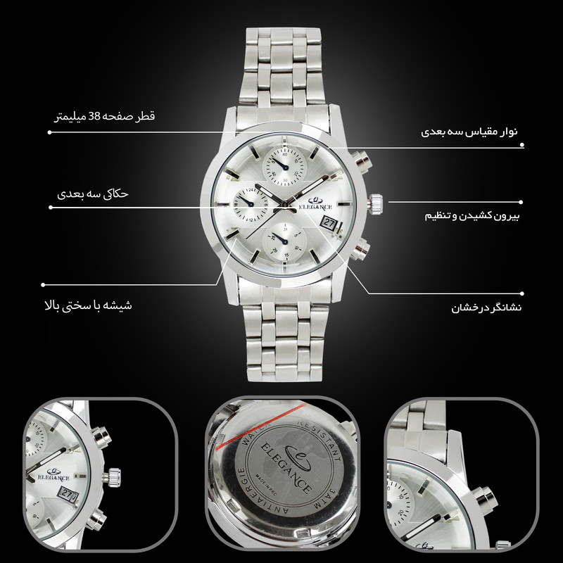 قطر صفحه ساعت : 38 میلی متر