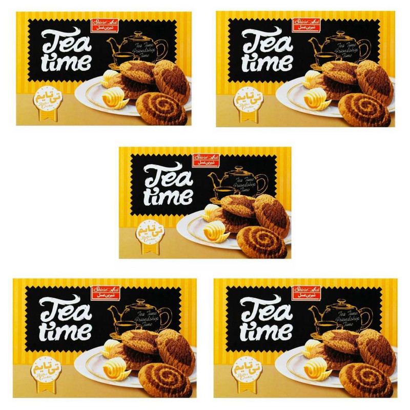 بیسکویت کره ای دو رنگ تی تایم شیرین عسل - 300 گرم بسته 5 عددی
