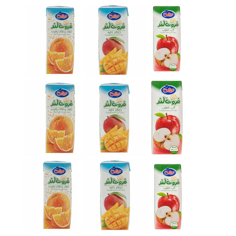 آبمیوه پرتقال و انبه و سیب قرمز میهن - 200 میلی لیتر بسته 9 عددی