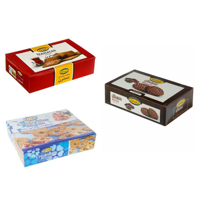 بیسکویت کرمدار با طعم کاکائو و نارگیلی و پذیرایی گرجی - بسته 3 عددی