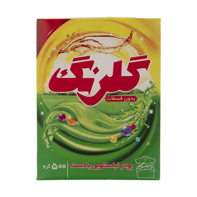 پودر لباسشویی دستی گلرنگ درخشان برای شستن لباسها با دست، یا ماشین لباسشویی نیمه اتوماتیک طراحی شدهاست. پودر لباسشویی دستی، نسبت به سایر شویندهها کف بیشتری تولید میکند و میتواند لکهها را به خوبی از روی لباسها و پارچهها پاک کند. از آنجایی که این نوع پودر، نسبت به سایر شویندهها آنزیم کمتری دارد، برای شستن پارچههای ظریف مانند ابریشم و پشم یا لباسها توری بسیار مناسبتر است و الیاف پارچههای ظریف را تجزیه نمیکند. یکی از ماندگار و باکیفیتترین پودرهای لباسشویی دستی، پودر لباسشویی 500 گرمی گلرنگ است که با قدرت پاککنندگی بالایش میتواند لباسهای ظریف شما را به خوبی تمیز کند.