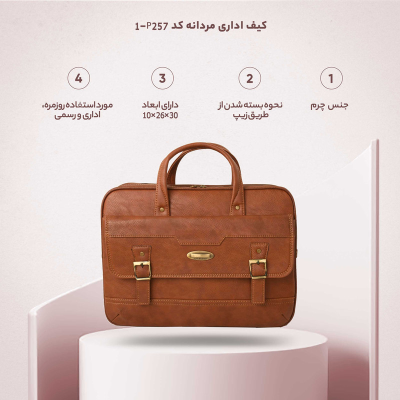 یک کیف اداری مردانه با انواع و اقسام جیب و محفظه برای دستهبندی و قرار دادن لوازم شخصی و اسناد اداری. کیف اداری مردانه کد 1-P257 به طور حرفهای برای استفاده اداری و رسمی طراحی شده است، شاهد آن هم محفظههای زیپ داری است که امنیت تمام محتویات داخل کیف را ضمانت میکند. محفظه اصلی کیف از دو محفظه مجزا تشکیل شده که فضای ایدئالی برای نگهداری انواع اسناد خواهد بود. در جلوی این کیف یک جیب کوچک ساده قرار دارد که توسط دو دکمه مگنتی بسته میشود. یک جیب بزرگ در پشت کیف، به آسانی به انواع لوازم و اشیای کوچک و ضروری سر و سامان میدهد. علاوه بر دستههای بالای کیف، با وصل کردن بند دوشی میتوانید از این محصول به عنوان یک کیف رودوشی هم استفاده کنید. این کیف از چرم مصنوعی مرغوبی تهیه شده و به زیبایی و با کیفیت دوخته شده است. کیف اداری مردانه کد 1-P257 در یک رنگ عسلی طراحی شده و برای خلق ظاهری رسمی و در عین حال آراسته و هوشمندانه همراهی ایدئال خواهد بود.