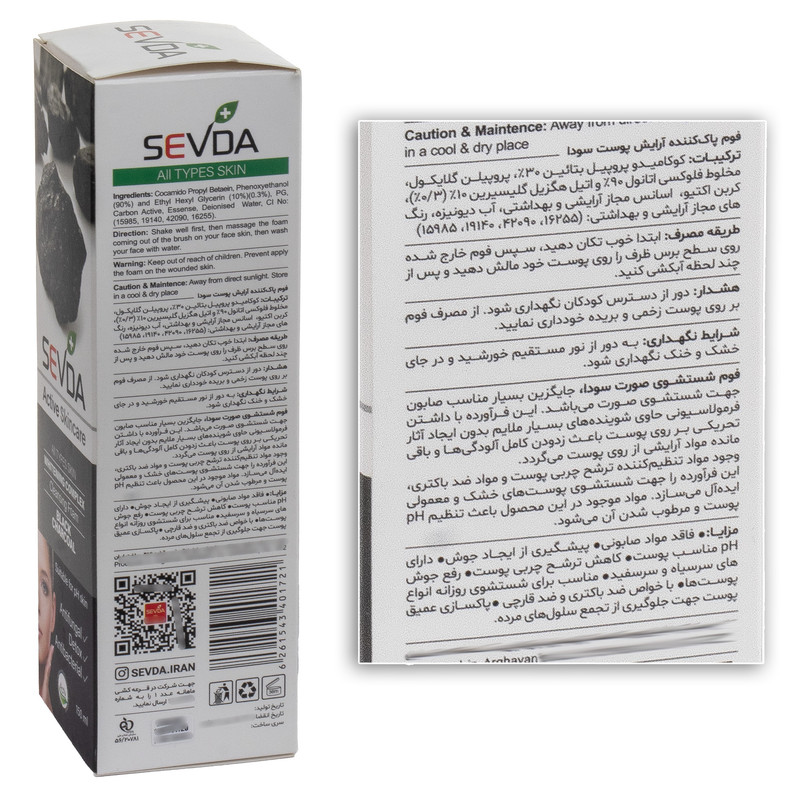 فوم شستشوی صورت سودا جانشین بسیار مناسب صابون جهت شستشوی صورت می باشد. این فراورده با داشتن فرمولاسیونی حاوی شوینده های بسیار ملایم بدون ایجاد آثار تحریکی بر روی پوست باعث زدودن کامل آلودگی ها و باقی مانده مواد آرایشی از روی پوست می گردد. وجود مواد تنظیم کننده ترشح چربی پوست و مواد ضد باکتری ، این فراورده را جهت شستشوی انواع پوست ایده آل می سازد . علاوه بر اینکه مواد موجود در این محصول باعث تنظیم PH پوست و مرطوب شدن آن می شوند. برس سیلیکونی سر محصول قابل شستشو می باشد. این محصول فاقد مواد صابونی بوده و دارای PH مناسب پوست صورت میباشد. این محصول سبوم پوست را کنترل کرده و از بیرون زدن جوش های سر سیاه و سر سفید جلوگیری میکند. شما میتوانید به صورت روزانه از این محصول استفاده کنید و با خواص ضد باکتری و ضد قارچی محصول پاکسازی عمیق پوست خود را انجام داده و از تجمع سلول های مرده روی پوست جلوگیری کنید.