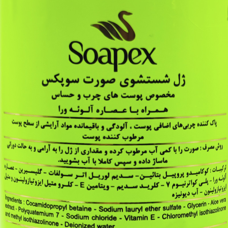 ژل شستشوی صورت سوپکس مخصوص پوست های چرب و حساس همراه با عصاره آلوئه ورا و پاک کننده چربی های اضافی پوست ، آلودگی و باقیمانده مواد آرایشی از سطح پوست و مرطوب کننده پوست می باشد.