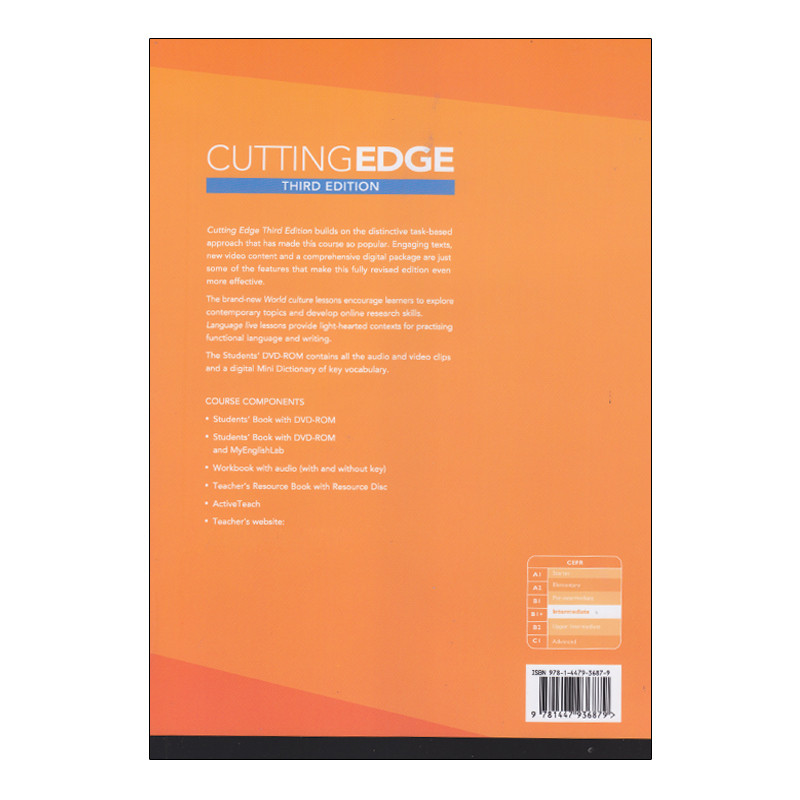 کتاب Cutting Edge 3rd Edition Intermediate چهارمین کتاب از مجموعهی 6 جلدی Cutting Edge است. هدف از طراحی این مجموعه، بهبود و ارتقای مهارتهای اصلی زبان انگلیسی- مثل Grammar، Vocabulary، Pronunciation و…- با استفاده از تمرینات کاربردی بوده و برای بزرگسالانی که قصد یادگیری زبان انگلیسی را دارند، مورد استفاده قرار میگیرد. این مجموعه با ارائهی موضوعات متنوع، کاربردی و روزمره باعث تقویت توانایی زبانآموزان در مهارتهای مختلف مثل مهارتهای گفتاری و شنیداری میشود. این مجموعه دارای کتابکار (Workbook)، فایل صوتی CD و همچنین فایل تصویری بوده که در مجموع، تاثیر شایانی در روند یادگیری مخاطبان دارد.