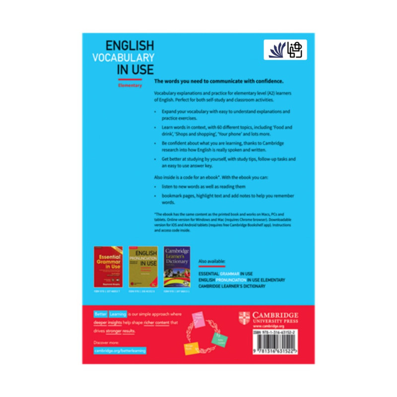چرا سري کتاب هاي Vocabulary in Use مورد پسند خوانندگان قرار گرفته است؟ در زير به برخي موارد اشاره شده است: از ويژگي هاي اين مجموعه مي توان به موضوع بندي لغات براساس موضوع اشاره کرد. ويژگي ديگر اين کتاب نشان دادن کاربرد صحيح لغات تدريس شده در بافت مي باشد که بدين وسيله يادگيري لغت را در ذهن نهادينه مي کند و به زبان آموز الگويي براي کاربرد لغات مي دهد. مهم ترين ويژگي اين مجموعه پاسخ نامه اي است که در انتهاي کتاب آمده است که اين کتاب را براي عزيزاني که قصد دارند زبان را به صورت خودخوان بياموزند، قابل استفاده مي کند. مجموعه Vocabulary in Use همانطور که از نام آن پيداست، سعي در مطرح نمودن لغات کاربردي زبان انگليسي دارد که از اين رو مورد توجه بسياري از مدرسين و زبان آموزان قرار گرفته و يکي از محبوب ترين کتاب ها در زمينه تقويت لغات زبان انگليسي مي باشد. اين کتاب شامل 100 درس دو صفحه اي است که در صفحه اول لغات و عبارت به کمک تصاوير، نمودارها و مکالمات کوتاه در زندگي واقعي آموزش داده مي شود و در صفحه دوم تمارين مرتبط با موضوع درس ارائه مي گردد که در پايان کتاب پاسخ اين تمارين ارائه مي شود. همچنين CD نرم افزار اين مجموعه دربردارنده تمرين ها و تست هاي بيشتري است که مي تواند به يادگيري بيشتر لغات ضروري و روزمره زبان انگليسي منجر شود.