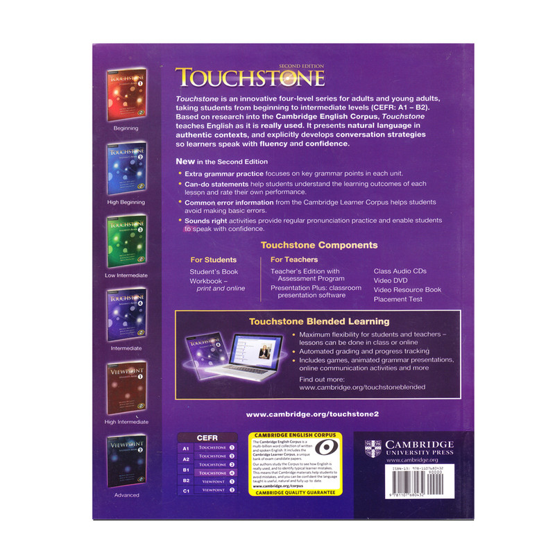 Touchstone 2nd ، این مجموعه در ۴ سطح مطابق با سیستم آمریکایی به سبک North American English یکی از موفق ترین واحدهای آموزشی برای گروه سنی بزرگسال از انتشارات کمبریج می باشد. این کتاب corpus-based بوده و از مشخصه های بارز آن می توان به مقوله Real English guarantee اشاره کرد. مهارت برقرای ارتباط و مکالمه وconversation management (شیوه آغاز و اتمام آن، نشان دادن علاقه، شیوه های سوال پرسیدن و …)، تمرکز بر آموزش واژگان و استراتژی های یادگیری آن ها، ارائه نکات گرامری، حقایق کاربردی درباره spoken language، استراتژی های مربوط به listening و writing و reading، از ویژگی های بارز این گروه میباشد.