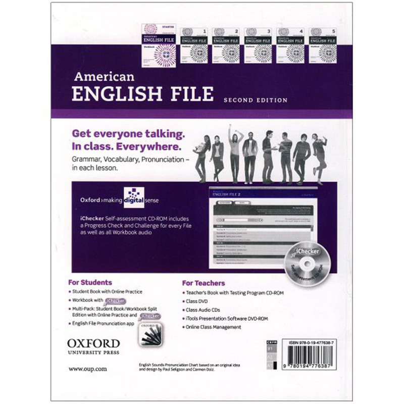 تمرکز اصلی این کتاب بر روی هر چهار مهارت زبان انگلیسی یعنی: Reading ,Speaking ,Writing ,Listening است و تاکید آن بر روی قواعد، ساختار لغت، تلفظ صحیح کلمات و جملات و همچنین درک متون میباشد. لهجه کتاب آمریکایی است و در هر درس به سه موضوع پرداخته میشود. ترتیب موضوعی کتاب شامل: واژگان، تلفظ، شنیدن و مکالمه، مهارت خواندن، و در آخر مهارت نوشتاری است. American English File نگاهی همه جانبه به زبان دارد و این یکی از مزیتهای قابل قبول این کتاب و انتخاب آن به عنوان کتاب برگزیده در کلاسهای درس میباشد. هر کتاب دارای سه عدد سیدی است که یک سیدی مربوط به تست آنلاین میباشد و سیدی دوم فایلهای ویدیویی و گزارشات خیابانی هستند و آخرین سیدی هم مربوط به فایل صوتی هر درس میباشد. ویژگی بارز دیگر کتاب وجود دو بخش Grammar Bank و Vocabulary Bank است، این بخشها به تمرین بیشتر در دو زمینه واژگان و گرامر میپردازد و زبان آموز را دوباره مورد بررسی قرار میدهد. از کتابهای مکمل این محصولمی توان به کتاب Grammar in use (تمرکز بر روی گرامر به سبک کاملا کاربردی است) و همچنین Oxford Word skills (سطح مبتدی) اشاره کرد که در جهت پیشبرد اهداف این کتاب مناسب هستند. این کتاب مناسب افرادی با دانش زبانی اولیه در سطح مبتدی میباشد. در ادامه میتوانید از کتابهای دیگر این مجموعه نیز استفاده کنید.