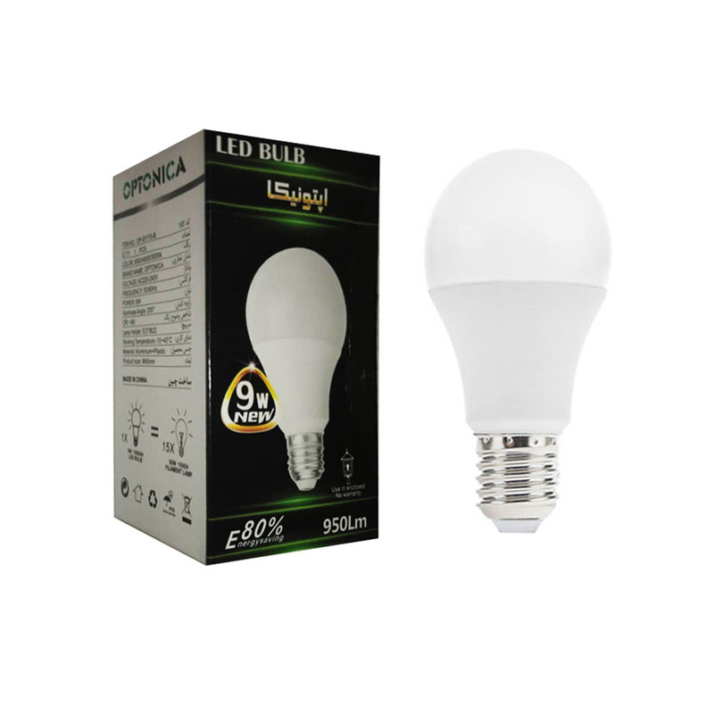 لامپ ال ای دی 9 وات اپتونیکا مدل OP08 پایه E27 بسته 8 عددی