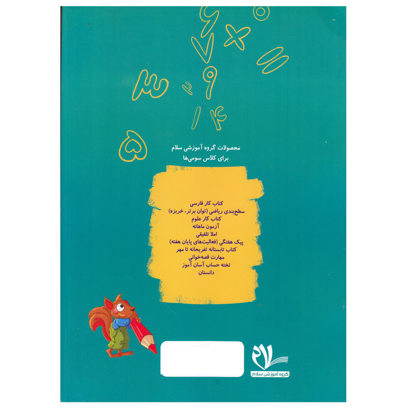 کتاب کار ریاضی سوم سید جواد تزرقی و طاهره آزمون دبستان اثر فرشته ستایش انتشارات گروه آموزشی سلام حاوی نرم افزار جادویی QR، تالیف توسط مدرسین کتاب های جدیدالتالیف، همگام با آخرین تغییرات کتب درسی، درسنامه، نکات کلیدی و توضیحات جامع درس به درس، آزمون های جامع و ارزشیابی های نیمسال اول و دوم تحصیلی، سوالات طبقه بندی شده و متنوع (تشریحی،تستی و....)سوالات با ضریب دشواری بالا (سوالات ستاره دار)، نمونه سوالات امتحانی و آزمون های ورودی مدارس خاص میباشد.