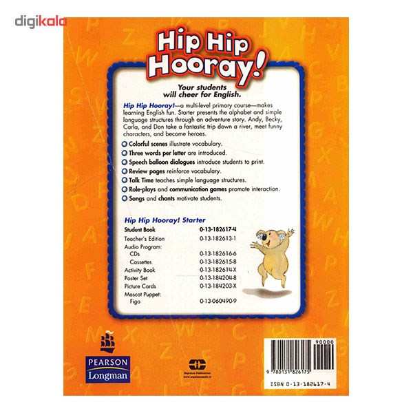 کتاب آموزش زبان «Hip Hip Hooray-Starter» را «Beat Eisele»، «Catherine Yang Eisele»، «Stephen M. Hanlon»، «Rebecca York Hanlon» و «Barbara Hojel» تدوین کردهاند. این مجموعه به همراه لوح فشرده با استفاده از داستانهای ساده و همچنین با تصاویر زیبا و جذاب و آهنگهای شنیدنی به آموزش زبان انگلیسی میپردازد. هدف این مجموعه آموزش نکات گرامری و بالا بردن قدرت تلفظ کودکان است. این مجموعه در هفت سطح در نظر گرفته شده و هر سطح دارای کتاب دانشآموز، کتاب کار، کتاب معلم، کتاب داستان، فلش کارت و لوح فشرده است. کتاب حاضر را انتشارات «لانگمن» منتشر کرده و افست آن از طریق انتشارات «سپاهان» در اختیار مخاطبان قرار گرفته است.