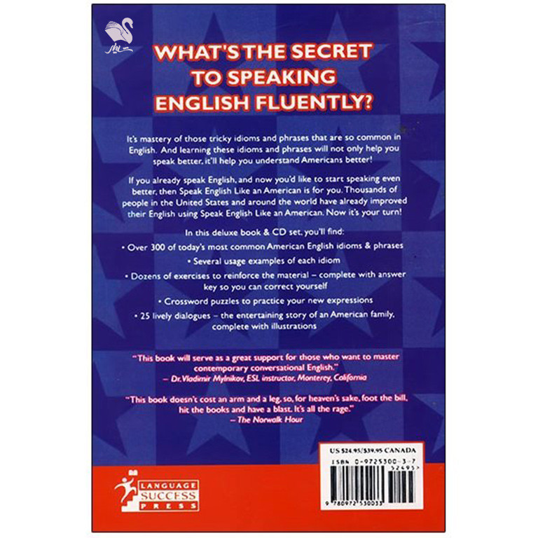 کتاب Speak English Like An American مجموعه ای پیوسته برای یادگیری اصطلاحات زبان انگلیسی است. کتاب Speak English Like An American از جانب بسیاری از زبان آموزان مدرسان زبان انگلیسی تایید شده و در قالب 25 درس به همراه فایل صوتی ارائه شده است . از آنجا که در هر زبانی گفتار روزمره و محاوره بسیار استفاده میشود، این مجموعه آموزشی نیز کمک زیادی به یادگیری اصطلاحات رایج در زبان انگلیسی خواهد کرد چرا که هر چه بیشتر با این عبارات و اصطلاحات آشنا شویم روان تر صحبت میکنیم.