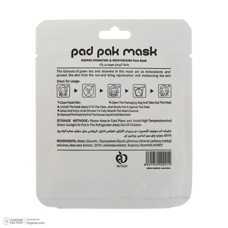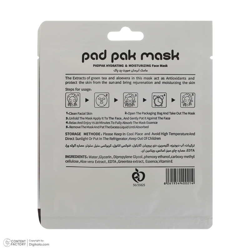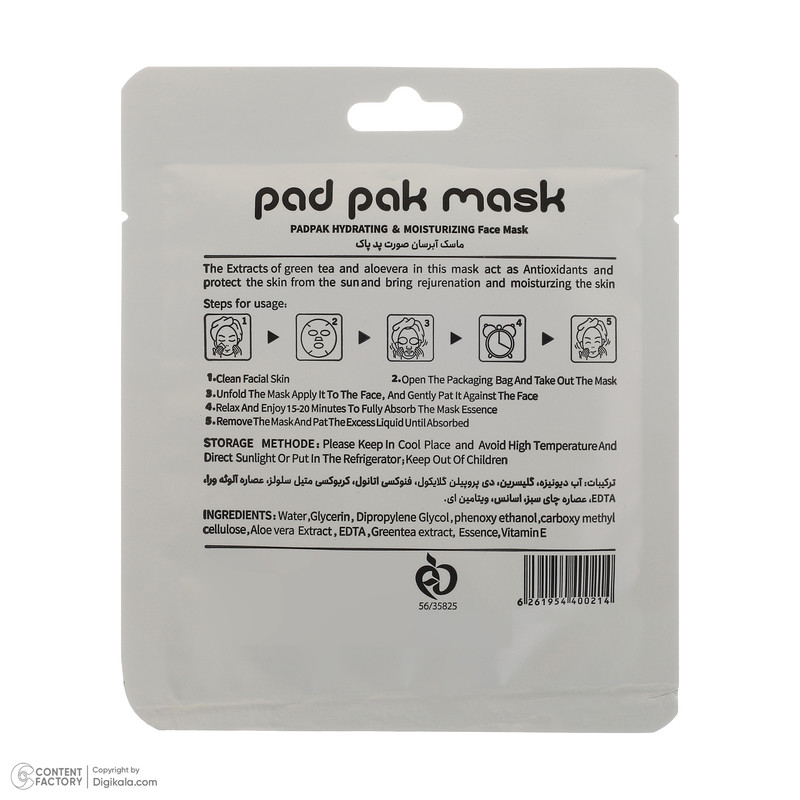 ماسک صورت پد پاک مدل 04 حجم 25 میلی‌لیتر بسته 4 عددی