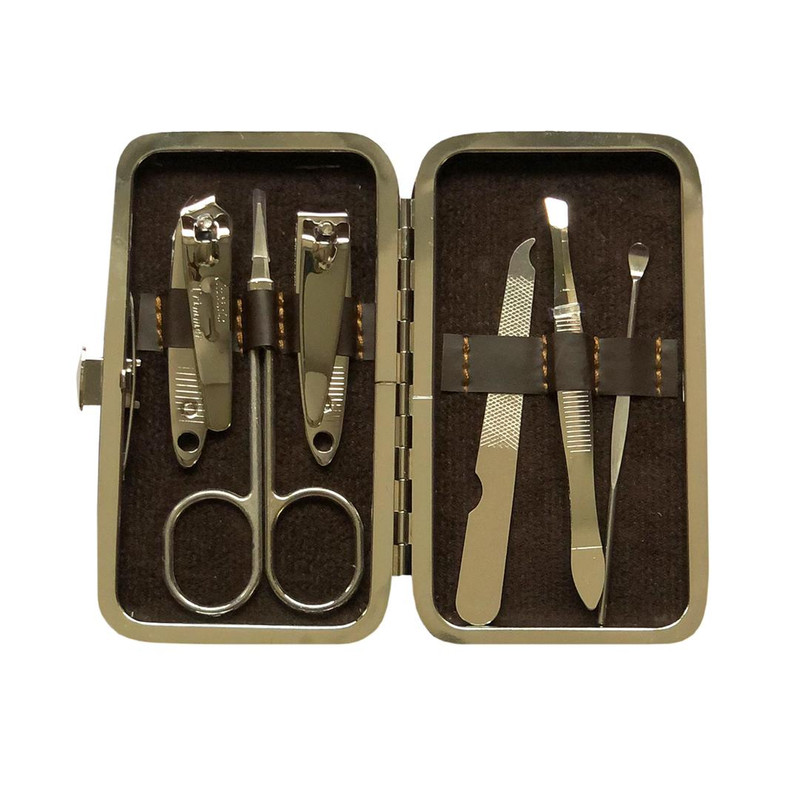 ست مانیکور ۶ تکه تمام ابزارهای لازم برای را درون کیف چرمی جای داده است. این محصول یا بسته بندی شکیل و جمع و جور بسیار برای کادو دادن مناسب است. این وسیله به دیل حجم کمی که دارد بسیار برای سفر نیز مناسب است.