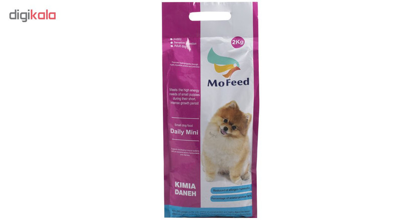 غذای سگ مفید مدل MINI DOG PUPPY یک غذای مناسب برای سگ های کوچک می باشد. سگ های کوچک نسبت به سگ های بزرگ به انرژی بیشتری نیاز دارند وسریع تر به وزن کامل می رسند.همچنین طول عمر آنها نیز بیشتر است.تغذیه سگ های کوچک با جیره بالانس شده با عناصر با کیفیت بالا و تازه یک استاندارد طلایی است.غذای خشک مفید غنی شده با ویتامین ها و مواد معدنی ، به گونه ای فرموله شده است که نیاز های تغذیه سگ های کوچک و مخافظت از دستگاه گوراش یک رژیم غذایی سالم و کامل را فراهم میکند.تیم MOFEED محصولات خود را در زمینه حیوانات خانگی خوراک های تخصصی سگ و گربه با رعایت بهترین جیره بر اساس قیمت در بازار ایران را عرضه کرده است . درتیم MOFEED دامپزشکان و متخصصان تلاش می کنند جز به وجدان کاری و سلامت حیوانات و پرندگان فکر نکنند و آرزومندیم که این محصولات را با بالاترین کیفیت به تمام جهان عرضه کنیم.غذاهای مفید ؛ غذایی کامل بوده و مکمل های ویتامینه و معدنی آن با مجوز در کارخانه تهیه شده و اولین خوراک داخل کشور دارای مخمر هیدرولیز شده تجاری میباشد. هیج افزودنی تحریکی اشتها یا گول زننده حیوان اضافه نشده و به حقوق حیوانات احترام گذاشته شده است. تمامی تولیدات بدون مواد نگهدارنده است و هیچ آنتی بیوتیکی چه شیمیایی و چه طبیعی در این خوراک وجود ندارد. نگهداری غذا را با کاهش رطوبت به زیر 7درصد کنترل می شود. بسته بندی خوراک به گونه ای طراحی شده است تا نور از آن عبور نکند و چربی ها و مواد مغذی آن اکسید نشوند .