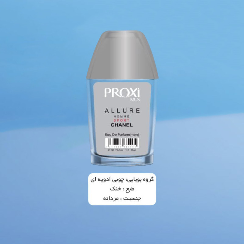 عطر جیبی مردانه پروکسی مدل Allure Homme Sport عطریست جوان پسند که با رایحه ای سرشار از تازگی، سرزندگی و شادابی برای مصرف در طول روز و طی ملاقات های رسمی پیشنهاد می شود. این محصول بخاطر بوی خنک و شیرین خود برای روزهای گرم سال پیشنهاد خوبی می باشد. این عطر وسوسه انگیز، مهیج و محرک مناسب آقایانی است که روابط عمومی بالایی دارد و از بودن کنار دیگران لذت می برند. مواد معطر جنگلی، وتیور، مشک، لوبیا، تونکا و دیگر ترکیبات معطر انرژی بخش از اصلی ترین ترکیبات به کار رفته در این محصول می باشد. هیجان، وسوسه انگیزی و تحرک بزرگ ترین ارمغان این عطر برای آقایانی است که از سطح بالایی از تعاملات اجتماعی برخوردارند.