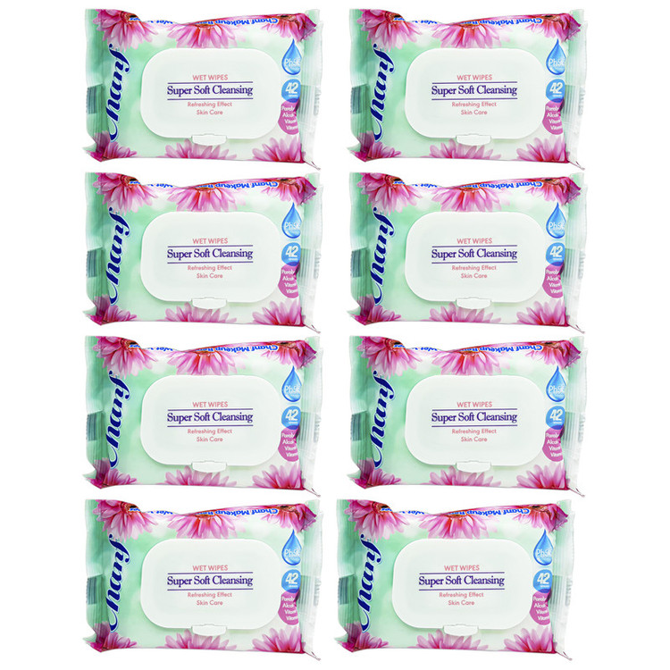 دستمال مرطوب پاک کننده آرایش چانف بسته 42 برگی مجموعه 8 عددی سازگار با انواع پوست پاک کنندگی عالی معطر و ضد عفونی کننده