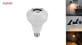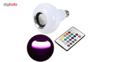 چراغ LED موزیکال یکی از جالبترین لوازم جانبی تولید شده است. این چراغ با استفاده از پایهی E27 به برق وصل میشود و با استفاده از فناوری LED نورهای رنگی تولید میکند. مصرف توان الکتریکی در این لامپ بسیار کم است و یک لامپ 12 وات محسوب میشود. البته شدت نوری که تولید میشود در حد خوبی است و احساس ضعیف بودن نور لامپ را نخواهید داشت. برای این لامپ، یک ریموت کنترل بیسیم طراحی شده که با استفاده از آن، میتوانید رنگ نور لامپ را تغییر دهید و شدت روشنایی آن را هم کم و زیاد کنید. یکی از ویژگیهای جالب این لامپ، مجهز بودن به یک اسپیکر داخلی است. این لامپ با استفاده از اسپیکر داخلی خود میتواند فایلهای موسیقی را پخش کند. برای پخش کردن موسیقی از اسپیکر لامپ، باید با استفاده از بلوتوث به لامپ وصل شوید تا تمام صداها از طریق اسپیکر لامپ پخش شود. ریموت کنترلی که برای تغییر رنگ و شدت نور لامپ به کار میرود، برای کنترل موسیقی هم کاربرد دارد و میتواند تا فاصلهی 10 متر عملکرد لامپ را کنترل کند. این لامپ برای محیط خانگی و برگزاری مهمانیها ایدئال است.