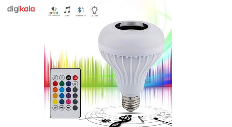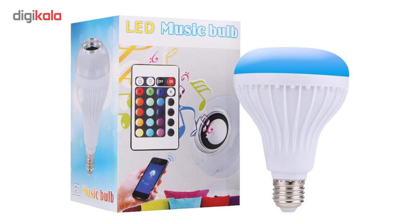 لامپ هوشمند و اسپیکر بلوتوث مدل MUSIC BULB، یک محصول چند منظوره برای پخش موزیک و تامین روشنایی می باشد که همانند لامپ به سرپیچ های معمولی یا E27 متصل می شود و از طریق گوشی یا دستگاه های دارای بلوتوث می توان به آن متصل شد و موزیک یا فایل صوتی مورد نظر را پخش کرد و از طریق ریموت کنترل همراه محصول می توان رنگ نور، شدت نور، میزان صدا و ... را تنظیم کرد.این لامپ دارای 13 رنگ نور و 4 حالت نوع روشنایی و یا رقص نور (FLASH ، STROBE ، FADE ، SMOOTH) می باشد که از طریق ریموت قابل کنترل است. این محصول از ورژن بلوتوث 3.0 بهره می برد و برد آن 10 متر می باشد.
