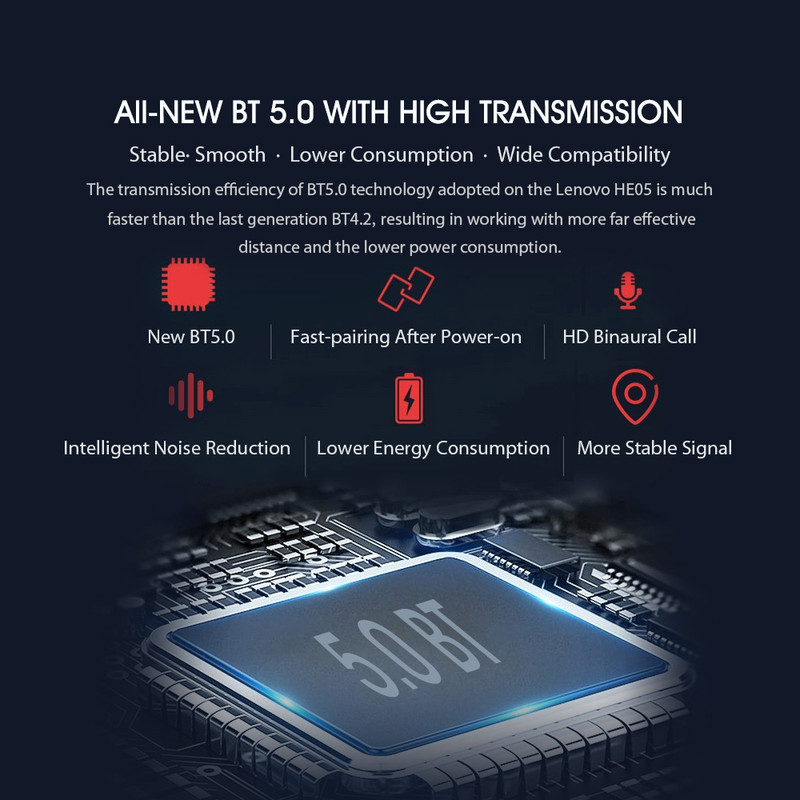 هندزفری بلوتوثی لنوو مدل HE05 TU-Bass یکی از هدفونهای بیسیم این کمپانی است که نسخه بروز شده و با کیفیت تر از سری بسیار محبوب HE05 میباشد .بخش گردنی این محصول با استفاده از پلاستیک مقاوم ABS ساخته شده است که بهکارگیری متریال پلاستیک علاوه بر مقاومت، وزن این هندزفری بیسیم را نیز تا حد زیادی کاهش داده است. مواد بکار برده شده در ساخت هندزفری لنوو HE05 TU-Bass به علت اینکه در تماس مستقیم با پوست هستند، ضد حساسیتاند و هیچ مشکلی را در استفاده طولانیمدت بروز نمیدهند .از ویژگیهای متمایز کننده این هندزفری نسبت به نسخه قدیمی HE05 میتوان به Bass عمیق، ارگونومی عالی، طول عمر باتری بالا، برقراری مکالمه HD و میکروفن مجهز به سیستم هوشمند حذف نویز اشاره کرد. دیافراگم کامپوزیت فیبرکربن + فن آوری صوتی بزرگ سیم پیچ متحرک تحت عمل مغناطیس و الکتریسیته، کیفیت صدای تکان دهنده موسیقی با فرکانس بالا ، متوسط و پایین را با قابلیت اطمینان بالا بازیابی میکند .کپسول این هندزفری از آلیاژ آلمونیوم ساخته شده و همین امر آن را در برابر ضربه و فشار مقاوم میسازد. دو سر هندزفری لنوو دارای آهنربا است که باعث می شود در صورت عدم استفاده و رها کردن هندزفری دور گردن این دوسر به هم متصل شده و مانند گردنبند کاملا با ثبات دور گردن شما قرار بگیرد. این هدست بلوتوث لنوو دارای تراشه بلوتوثی نسخه 5.0 است که از طریق آن به گوشی، تبلت و یا لپ تاپ متصل می شود. تراشه بلوتوثی 5.0، مصرف انرژی کمی دارد و بر بی سیم آن تا 10 متر می رسد. این چیپست بلوتوث، اتصالی پایدار و با ثبات و تماسی بدون اختلال را تضمین می کند.هدست بلوتوث لنوو HE05 TU-Bass دارای استاندارد محافظت IPX5 بوده و در برابر رطوبت و گرد و غبار از مقاومت بالایی برخوردار است.طراحی هندزفری بلوتوث دورگردنی لنوو بسیار ارگونومیک و مطابق طرح گوش بوده و به واسطه وزن کم ایربادز ها، در استفاده طولانی مدت کاربر را اذیت نخواهد کرد.کابل اتصال دو ایربادز به هم از جنس TPE بوده و بسیار انعطاف پذیر می باشد همچنین سری های ایربادز نیز از سیلیکا ژل و ضدحساسیت ساخته شده است. باتری 105 میلی آمپرساعت درون این هدست به کار رفته است که با یکبار شارژ کامل ، 8 ساعت پخش مداوم موسیقی را تضمین می کند. همچنین 120 ساعت در حالت آماده به کار خواهد بود.