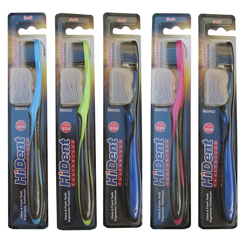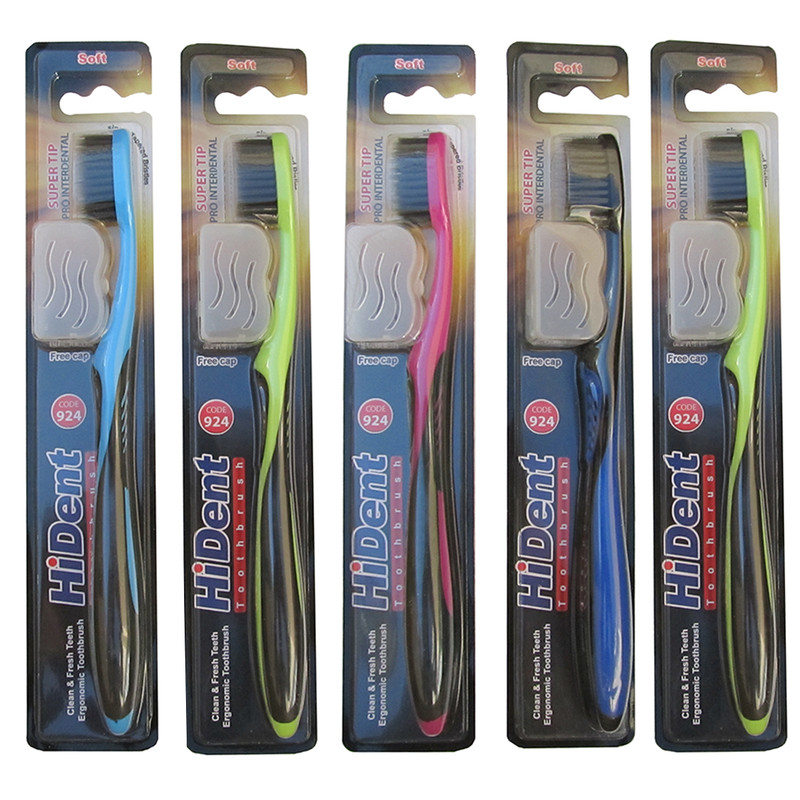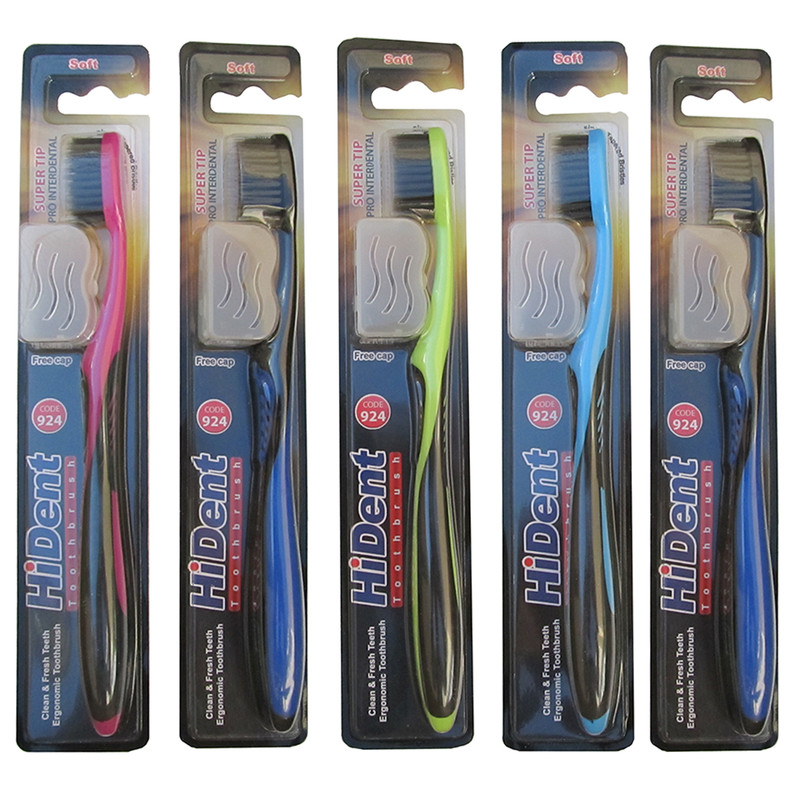 مسواک 924 های دنت با دسته ارگونومیک و الیاف بلند نرم و مخروطی عمیقا به تمیز کردن فواصل میانی دندان می پردازد و پلاک های سطحی روی دندان را می زداید. این محصول با برس های طلایی رنگ تولید شده که زیبایی خاصی را به ارمغان آورده است.